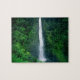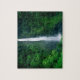Quebra-cabeça de jogo mostrado com uma impressão de foto de uma bela cena de cascata. Personalize este item ou comprar como está. Imagem do stock