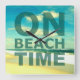 Um relógio cênico de fotos de praia que vai colocar sua mente na hora da praia, não importa onde você esteja! Este relógio da parede da praia do oceano apresenta uma fotografia cênica de praia com uma tipografia ousada que soletra On Beach Time. Se sua mente está na praia mais frequentemente que seu corpo, então esta coleção falará com você! Os relógios das paredes das praias do oceano são um maravilhoso lembrete para abrandar, respirar e aproveitar a vida como ela é no momento.