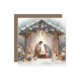 Esta cena serena de Natividade captura a beleza pacífica da Sagrada Família sob um estábulo rústico de madeira, suavemente iluminada por lanternas e cercada por uma neve suave. O design apresenta Maria, José e o menino Jesus em um momento caloroso e reverente, acentuado por flores delicadas de inverno, galhos de pinheiro cobertos de neve e luzes cintilantes. Pombas e cestas tecidas adicionam um charme pastoral, enquanto o estilo geral de aquarela suave evoca uma atmosfera tranquila e sagrada. Ideal para aqueles que buscam decoração de Natal espiritual ou religiosa, esta obra de arte combina simbolismo atemporal com toques sazonais elegantes, criando uma imagem festiva tocante e reflexiva. Arte gerada por IA.