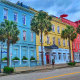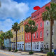 Imagem capturando os prédios lindamente coloridos do centro Charleston, SC. Esta poster é uma obrigação para qualquer um que se apaixonou pelo charme sul de Charleston.