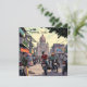 Imagem ai do estilo quadrinhos da área de centro de Kolkata, Índia, Motocicletas estacionadas e cartas. Um cartão com ilustração da movimentada rua de centro com edifícios, restaurantes, compras e pessoas nas suas motos.