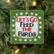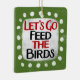 "Alimentos para as Aves" é um design de texto bonito em cinzas com texto preto e vermelho, juntamente com uma forma de sotaque branco e pontos brancos texturizados ao seu redor.