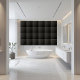 Este azulejo apresenta um padrão geométrico moderno com anéis de ouro concêntricos sobre fundo preto. O design é atraente para os olhos e versátil, adequado para uma variedade de estilos de design interior. Seria perfeito para criar uma parede, adicionar um toque de elegância a um banheiro, ou como sotaque decorativo em qualquer sala.
