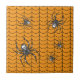 Um fundo laranja brilhante cria uma base perfeitamente temática no Halloween para um padrão repetido de teia negra rastejando com aranhas. Essas aranhas, modeladas após a falsa viúva, apresentam um crânio branco brilhante em seus abdômen e outras marcas brancas em seu corpo e pernas. Este azulejo pode ser enquadrado para criar um trivial ou colocar dentro a tampa da caixa de presente de madeira. Azulejos sem um quadro também ajustado a caixa-presente grande para criar um conjunto correspondente.