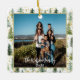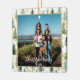 Padrão de árvore divertida e alegre com manchas de ouro metálicas (apenas imagem - não há papel real neste ornamento). Um quadro de ouro leve também adiciona elegância à sua foto. O nome da família e o ano estão em uma fonte branca com um pequeno gradiente por baixo. A parte de trás está cheia do padrão da árvore. As fontes são personalizáveis.