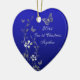 Lembre-se do seu dia especial com esta linda cerâmica floral azul real em forma de coração primeiro Natal junto com as borboletas de cinza prateada e flores nela. Você pode personalizar o texto para dizer o que quiser. ****Certifique-se de que o seu texto é colocado onde quiser e NÃO até qualquer borda, pois ele será impressão como aparece no seu monitor. Zazzle NÃO corrigirá nada. Também corresponde ao convite de casamento mostrado abaixo. Se precisar de assistência, envie um email para niteowlstudio@gmail.com.