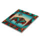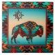 Brigue sua casa com este único "Um dos tipos" Azulejo de Buffalo no Sudoeste! Ele apresenta um Buffalo Sudoeste e Sol em um Fundo Turquesa e Sunset Laranja.. cercado por uma Fronteira Sudoeste em Turquesa, Laranja e Preto!