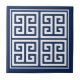 Azulejo cerâmico com chave grega (Meander), padrão elegante, de cor branca, sobre fundo azul escuro. Esta design do famoso e popular padrão grego da linha contínua pode ser editada para mudar sua cor, se você quiser. Você também pode adicionar uma cor de fundo ao design, se quiser.