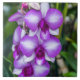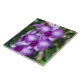 Uma bela fotografia de orquídeas brancas e roxas impressas num azulejo cerâmico.