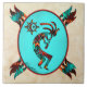 Brilhe sua casa com este único "Um dos tipos" Azulejo do sudoeste Kokopelli! Ele apresenta um Kokopelli tocando flauta e dançando sob o sol em um fundo turquesa...com uma fronteira sudoeste em Turquesa, chamas Pretas e Laranja!
