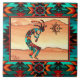 Brilhe a sua casa com este Azulejo único de "um tipo" do sudoeste de Kokopelli! Apresenta um Kokopelli Sudoeste Tocando Flute e Dançando Sob o Sol no Deserto... cercado por uma Fronteira Sudoeste em Turquesa, Laranja & Negro! Esta é uma Design de Arte Original do Artista Kerry Miller.