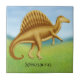 design original de um dinossauro de Espinossauro Pré-Histórico, da designer Carolyn McFann do Two Purring Cats Studio, impresso num azulejo cerâmico de qualidade e personalizável para fãs de paleontologia de todas as idades.