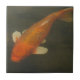 Azulejo com a foto da carpa do koi da laranja/ouro na água escura