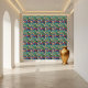 Capture a graça eterno da arte decorativa chinesa com este azulejo elegante. A design apresenta um pássaro azul estilizado entre ramos de ouro e flores delicadas em uma rica canvas verde e vermelha. Uma escolha incrível para a decoração de paredes, instalações de azulejos ou amantes de arte em busca de uma peça única inspirada pela beleza oriental.