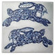 Minhas pinturas de coelho correndo azul e branco foram feitas em um belo mármore branco, e combinadas neste azulejo cerâmico.