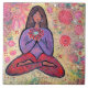 Design simples e versátil do trivet do azulejo da menina da ioga da ioga da menina de uma mulher que meditating e que guardara uma flor em suas mãos. Copyright Lindy Gaskill. O artista retem direitos reservados após a venda; nenhuma reprodução pode ser feita.