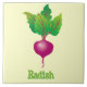 Ilustração do rabanete, ingrediente comum de salada com texto abaixo, torna esse azulejo perfeito para a cozinha. O plano de fundo é transparente para que você possa escolher uma cor que ajustado seu decoro, basta clicar em Personalizar logo abaixo da imagem.