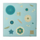 Diatomáceas microscópicas, algas em células solteiros com parede celular de sílica, criam um padrão divertido em um mar de turquesa pálida e exibem algumas das muitas formas em que entram, incluindo círculos, estrelas, quadrados e outros. Este azulejo pode ser enquadrado para criar um trivial ou colocar dentro a tampa da caixa de presente de madeira. Azulejos sem um quadro também ajustado a caixa-presente grande para criar um conjunto correspondente.