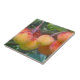 Azulejo com foto de amadurecimento de frutas de morango (arbutus). As Frutas são redondas e ligeiramente pontiagudas com tons de amarelo, laranja e vermelho.