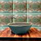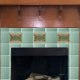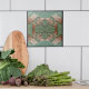 Esse azulejo de cerâmica decorativa apresenta folhas metálicas de Gingko de cobre sobre fundo verde. A folha Gingko é um clássico motif Artes e Artesanatos. Este azulejo foi projetado para uso em casas de artesão Bungalow. Isto pode ser usado em uma praça traseira da cozinha, no banheiro ou até em lareiras. Este azulejo impresso é uma variação sobre o azulejo feito à mão por Oregon Artist Fay Jones Day.