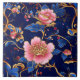 Azulejo de padrão floral de ouro azul-cobalto-chic.
