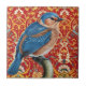 Representação espantosa do estilo da chinoiserie de luxo, este azulejo decorativo apresenta um pássaro azul belamente pintado cercado por um vermelho e um pano floral ricamente ornamental. Perfeito para atualizar sua cozinha, banheiro ou qualquer espaço com charme ousado e eterno. Excelente para quem ama arte ornamental, padrões inspirados na Ásia e aves decorativas.