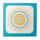 Este atraente azulejo cerâmico tem uma bonito imagem de rajada solar retrógrada em turquesa brilhante e laranja, dando-lhe uma aparência colorida a sudoeste. A imagem está em branco, com uma estrutura turquesa.