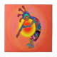 Este azulejo inspirado nativo americano tem Kokopelli com um lagarto e um sol em cores brilhantes e coloridas.