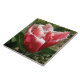 Este incrível azulejo apresenta uma fotografia incrivelmente detalhada de uma linda flor de tulipa rosa. As pétalas da flor estão apenas começando a se abrir para revelar a beleza dentro. Há diferentes tons de franjas rosa e belas em cada pétala.