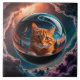 Uma tábua laranja numa esfera de vidro num espaço turbulento.
