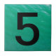 Azulejo do número da casa com um fundo da foto da água do oceano do verde de mar.