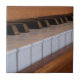Azulejo com a foto do teclado de piano que mostra as chaves brancas e pretas e o quadro de madeira
