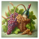 O azulejo cerâmico é apresentado com uma adorável uva e garrafa de vinho num impressão de cesto. Tamanho grande mostrado. Personalize este item ou comprar como está. Imagem licenciada