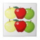 design gráfico de uma maçã mista do artista/designer Charmaine Paulson sobre um azulejo de cozinha.
