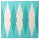 Este azulejo moderno de Argyle do meio século grande caracteriza um fundo vibrante, de turquesa e um teste padrão da modificação, cobertura translúcida maior, diamantes de creme com o ouro colorido, salpicos dos diamantes da cerceta do vintage da era espacial. Este argyle inspirado, deconstructed minimalista é uma reminiscência simplista do maior do que a era atômica da vida que dominou a paisagem de decoração dos anos 50 e dos anos 60. Este design kitschy é reminiscente de tudo sinais da pista de bowling do Palm Springs retro' às bandejas que da televisão você se usou na casa da sua avó.