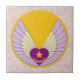 Este azulejo caracteriza um coração roxo de Sufi com estrela do ouro e o crescente surronded pelas asas amarelas e lavendar sobre um sol brilhante do ouro em um fundo do amarelo e das nuvens da lavanda. Uso como a base de um trivet ou de uma caixa de presente.