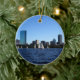 Se você ama os ornamento que capturam a essência de seus lugares favoritos, você amará este ornamento que caracteriza uma ideia da água da skyline de Boston!