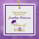 Ornamento de graduação com texto frontal e traseiro personalizado. Design de unísex legal fácil de personalizar com seu próprio texto. Apresenta a imagem de um boné roxo de formando e um diploma associado correspondente em um quadrado enquadrado. Cores vermelhas, pretas e outros bonés também estão disponíveis neste mesmo design.