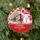 Os enfeites de natal bonitos da foto que caracterizam um boneco de neve adorável da menina ajustado em um fundo cor-de-rosa & vermelho das bolinhas, apenas adicionam SUA FOTO! Aperfeiçoe para o primeiro Natal & o segundo Natal. Um presente do Natal da maravilha sure a ser estimado por muitos próximos anos.