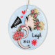 Enfeite de árvore de Natal bonitinho, Na moda e giro. Cores da equipe vermelha. Apresentando uma cheerleader com design de cabelo louro e fundo azul de aquarela. Mais cores de equipe, assim como cabelo e cores de pele disponíveis no meu compro. Personalize com seu nome e ano. Dons de excelente e guardar para Cheerleaderes, Equipes de Animação e Treinadores.