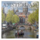 Uma bela fotografia de um barco num canal em Amsterdã, na Holanda, impressa num azulejo cerâmico de souvenir.