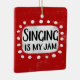 "Singing Is My Jam" é um design de texto divertido com uma forma de sotaque branca cercado por pontos brancos texturizados.