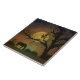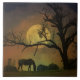 Uma grande lua de cheio rodeada por um carvalho com um bonito cavalo apimentado pairando à lua. Um azulejo divertido e fantástico de arte sobre cavalos.