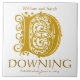 D Monograma Dourado em Branco - Nomes Azulejo de Data de Casamento