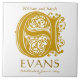 E Monograma Dourado em Branco - Nomes Azulejo de Data de Casamento