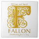 F Monograma Dourado em Branco - Nomes Azulejo de Data de Casamento