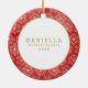 Flocos de neve brancos delicados sobre um fundo vermelho. Circunde a foto no meio moldado no ouro. Fácil personalizar para criar uma lembrança especial Natal do bebê do ø! Substitua por favor a foto do modelo antes de comprar.