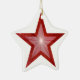 Design moderno com uma estrela brilhante, cintilante vermelha e branca sobre fundo branco. Um ornamento em árvore de natal em forma de estrela com um design personalizável vermelho e branco para você personalizar com seu próprio texto, imagens e ideias. Criado por Jess Perry usando fotografias originais e técnicas digitais.