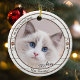 Um ornamento elegante com sua foto personalizada (cat), emoldurada por um design de madeira branco rústico com revestimento metálico e estampas de pata de gato. Bom para um primeiro Natal ou como um ornamento memorial.