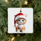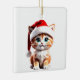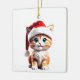 Cerâmica Gato Bonito com Ornamento de Chapéu de Natal